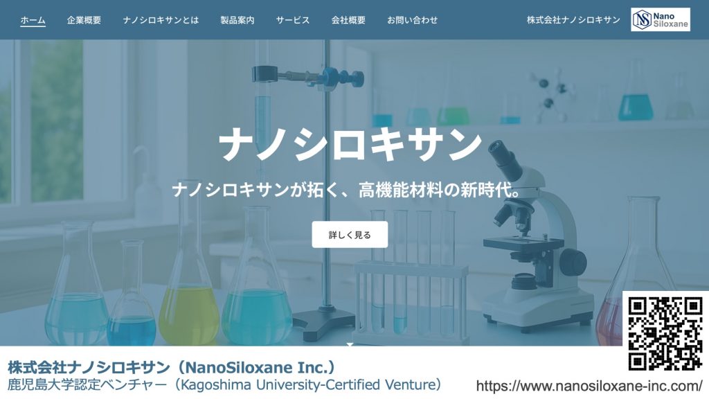 金子研究室での長年の研究成果が実を結び、2025年6月2日、鹿児島大学認定ベンチャー企業 「株式会社ナノシロキサン」(https://www.nanosiloxane-inc.com/) が設立されました。