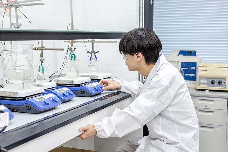 金子研究室では、有機物質(プラスチックなど)と無機物質(セラミックやガラスなど)がナノメートルスケールで混ざりあった有機-無機ハイブリッド材料や、さらに小さい元素レベルで有機成分と無機成分が組み合わさったハイブリッド化合物(構造制御ナノシロキサン)の合成を研究しています。また、これらの化合物を活用し、環境・エネルギー問題の解決に資する機能性材料の開発にも取り組んでいます。