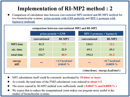 | In this page, we give a discription about RI-MP2 method in the FMO method. The following PPTs were used for the previous presentations. This work has been pablished [1]. | |||