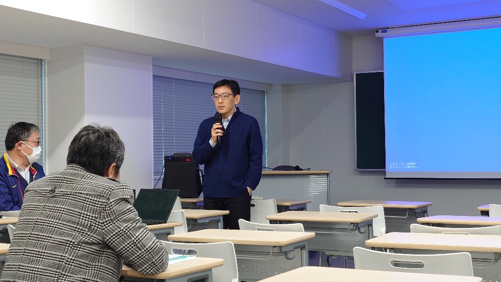 後ろにおられるのは隅田 泰夫 特任教授です。