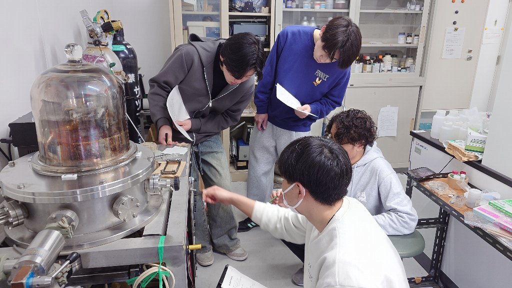 金属の薄い膜を作るための真空蒸着装置の扱いはこの研究の心臓部なので、