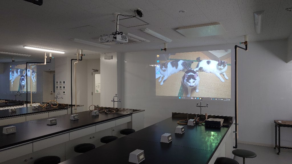 おまけ。この日、1F学生実験室にとうとうプロジェクタがつきました。