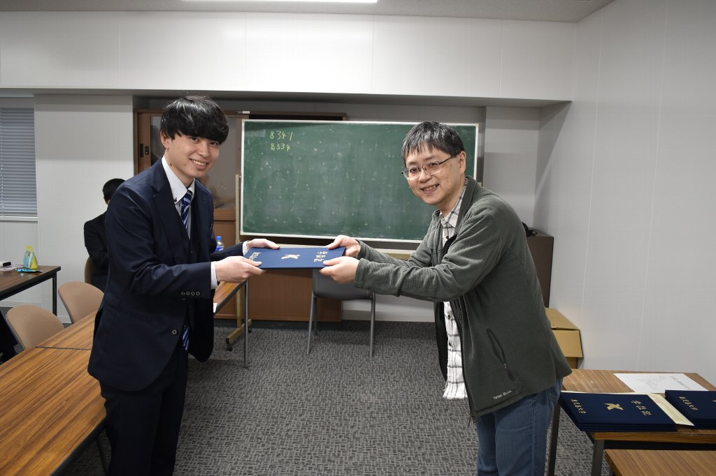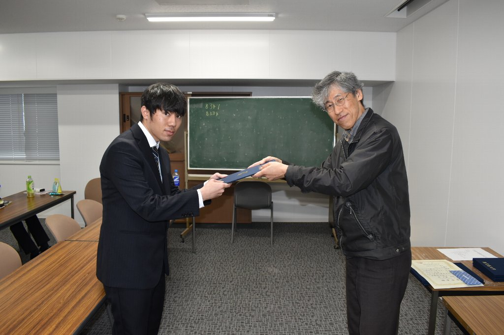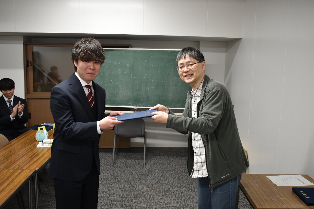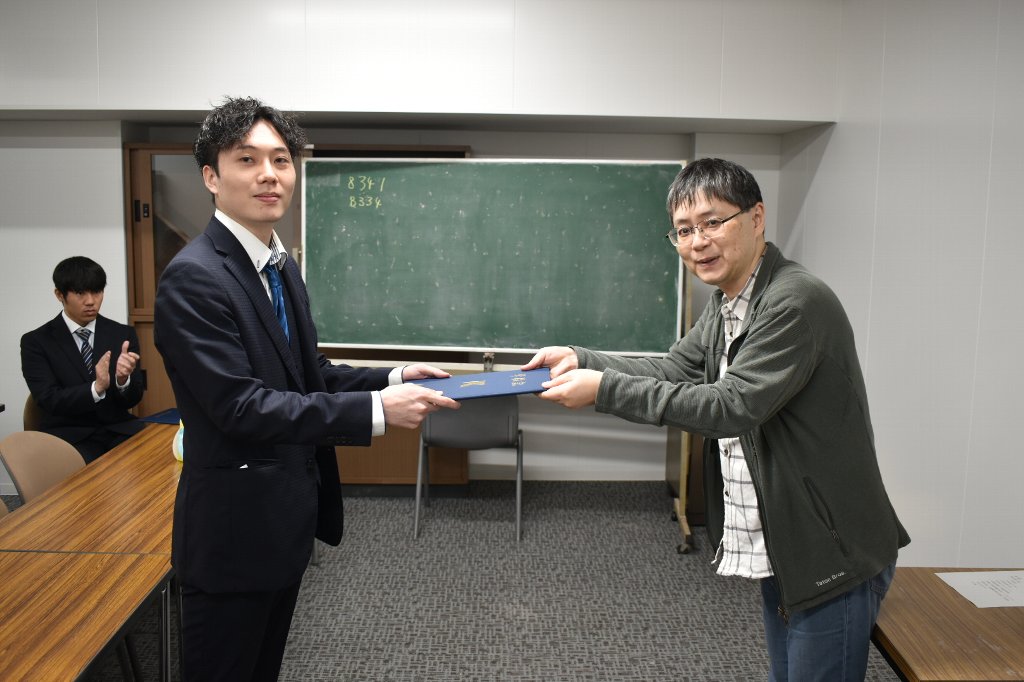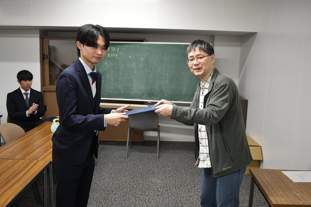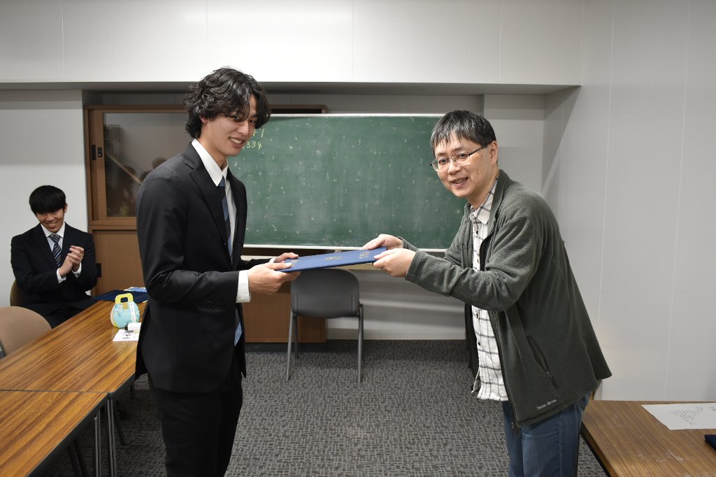 4人いますが、2人は別の研究室の学生さんなので授賞の様子は割愛しました。