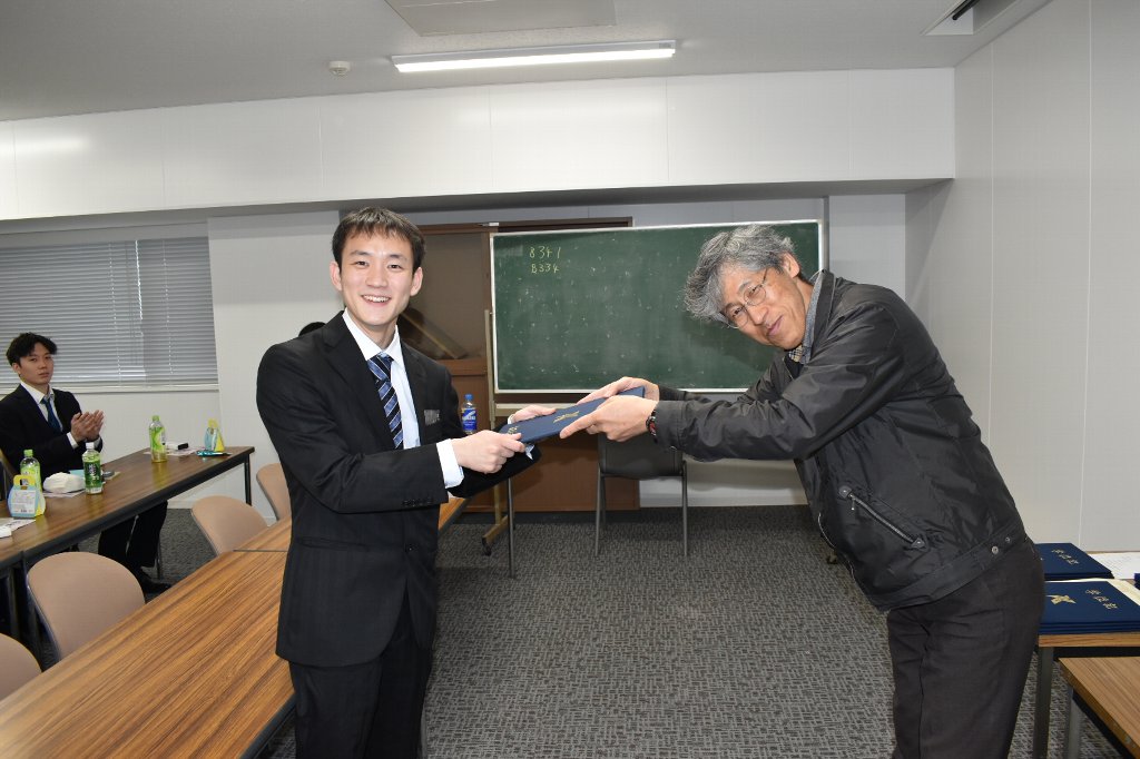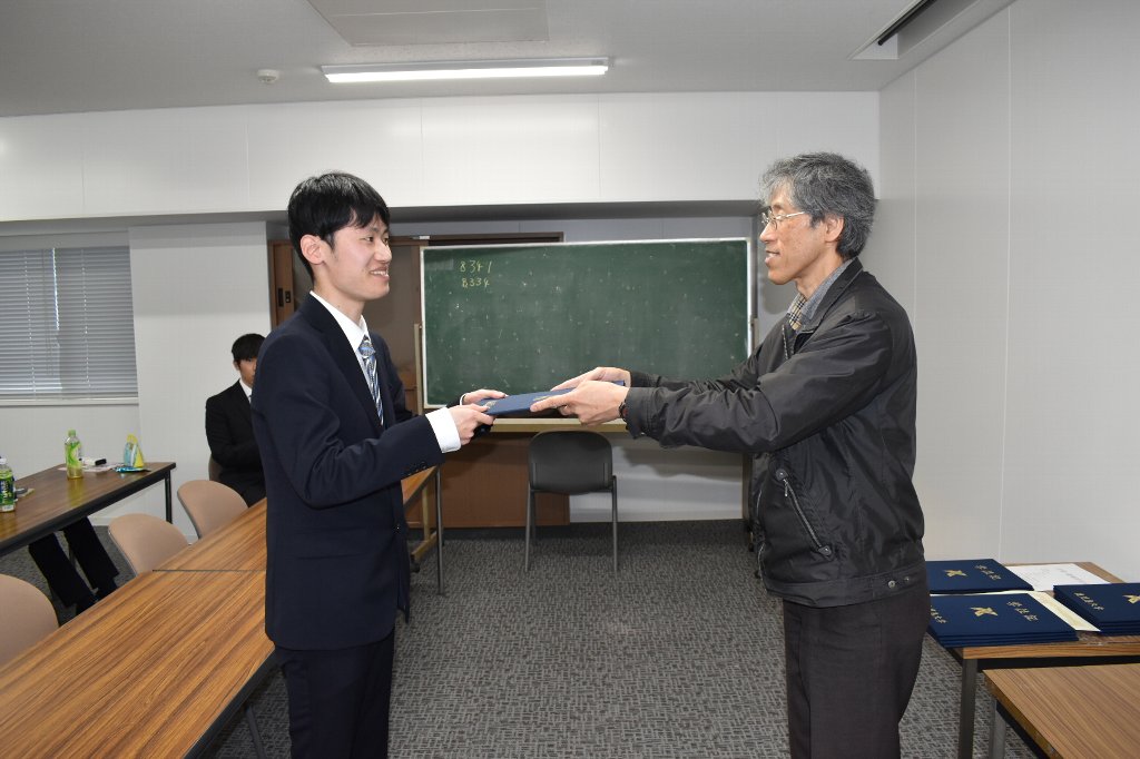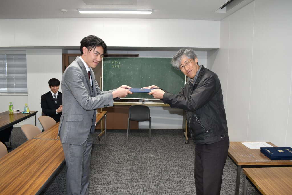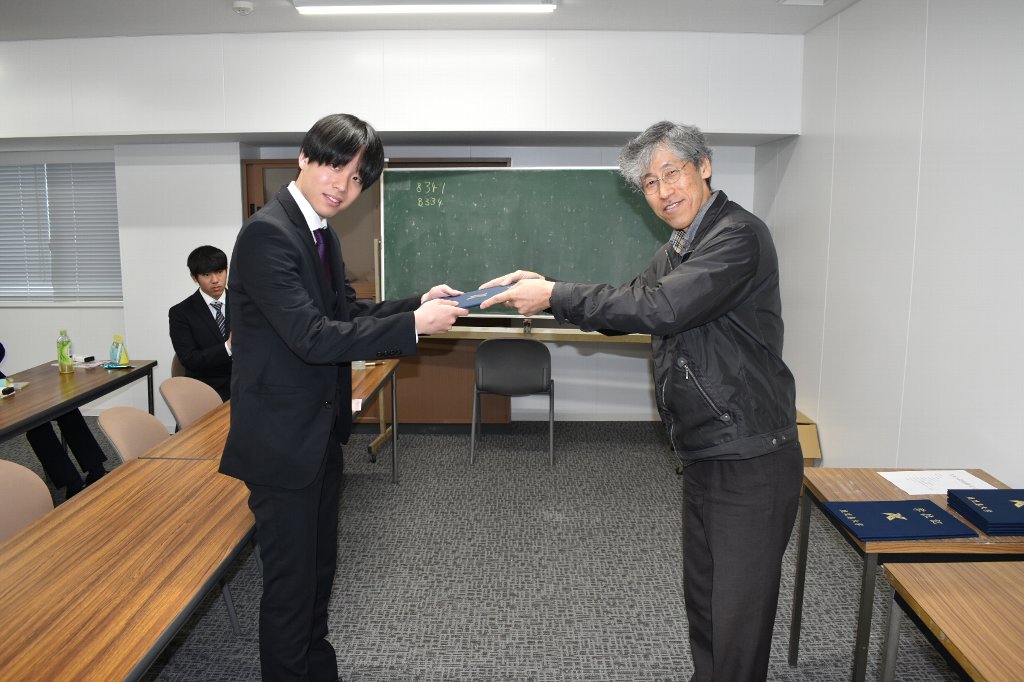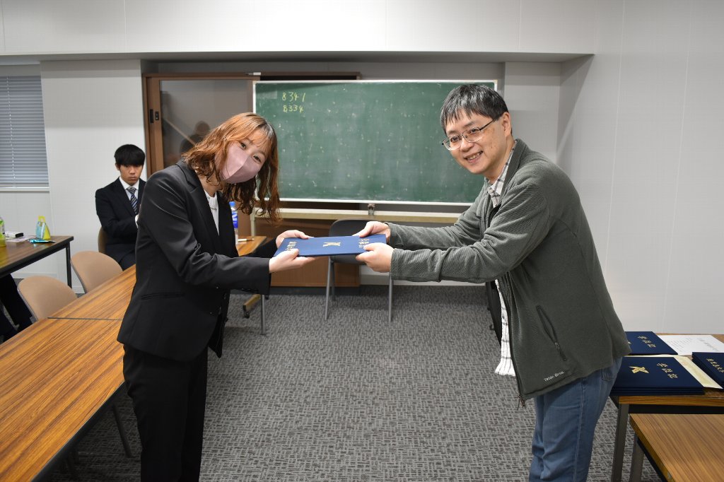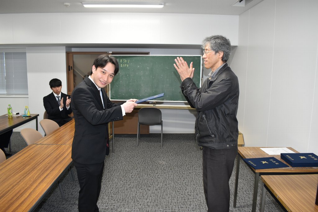 4人いますが、2人は別の研究室の学生さんなので授賞の様子は割愛しました。