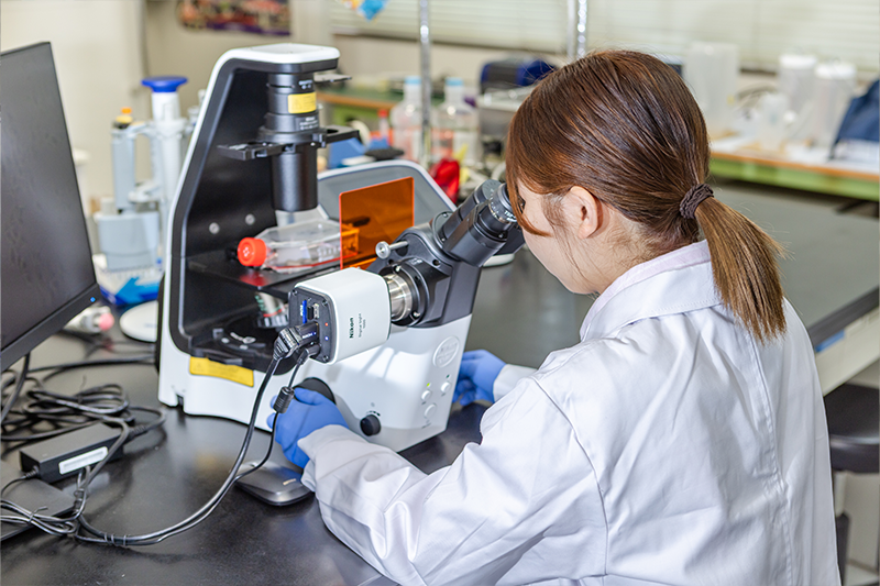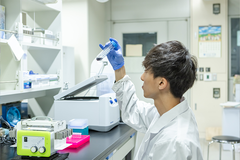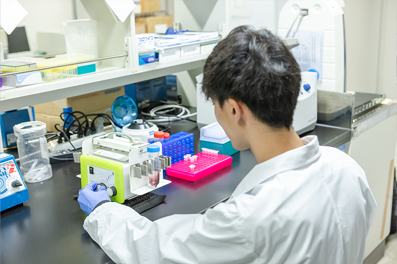 私たちのからだの中では、核酸・タンパク質・糖鎖・脂質などの有機分子が互いに影響し合いながら、生命活動を支えています。これらの有機分子の機能を明らかにすることは、生命活動の理解を深めるだけでなく、新たな医薬品の開発にも繋がります。私たちの研究室では、生体分子の中でも「糖鎖」に注目しています。糖鎖は、すべての細胞表面に存在し、細胞同士の情報伝達や免疫反応、さらにはウイルスや細菌の感染にも深く関わっています。私たちは、この糖鎖の未知の機能を明らかにし、その働きを活用した薬物送達システムの開発に取り組んでいます。このシステムを使用して、新たなワクチンアジュバント(免疫増強剤)や免疫治療薬の創出を目指しています。